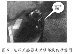 1)兩次擊穿均產生在電壓互感器法蘭根部,闡明與法蘭根部電場過于會集有關。正常作業條件下,在挨近帶電T處有絲絲電暈放電聲,標明電壓互感器電場不均勻,如圖6所示。
